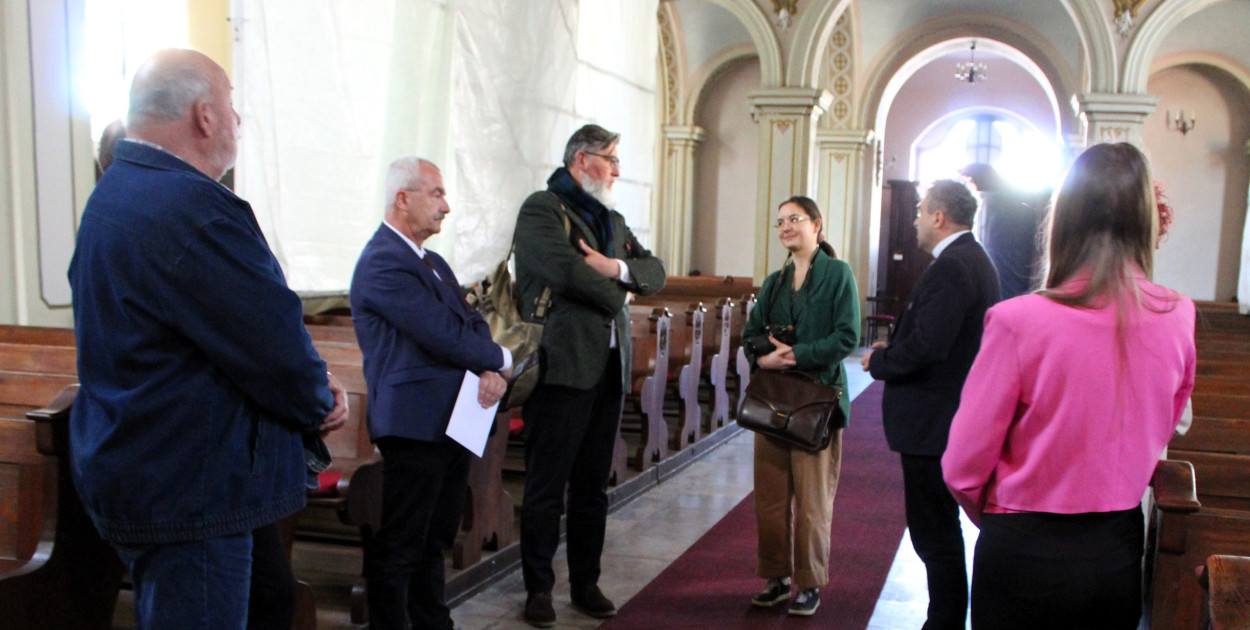 Na miejscu spotkali się: proboszcz parafii ks. kan. Krzysztof Ordziniak, inspektor ochrony zabytków Justyna Piniecka, wykonawca prac konserwatorskich przy witrażach Marcin Czeski, burmistrz Henryk Zieliński oraz pracownicy Urzędu Miasta i Gminy Mikstat Tomasz Maciejewski i Maria Piszczałka.