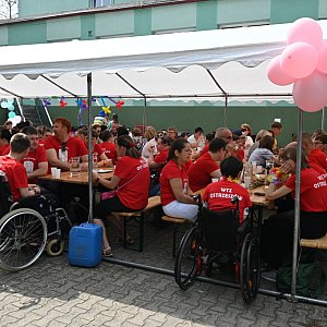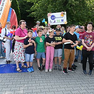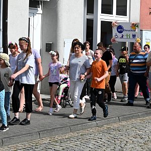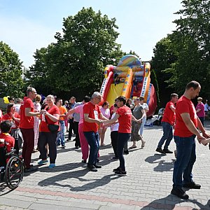Przedstawiciele ośrodków wsparcia – warsztatów terapii zajęciowej, środowiskowych domów samopomocy i domów pomocy społecznej, oraz zaprzyjaźnionych przedszkoli, przemaszerowali ulicami miasta, przez rynek, na dziedziniec Specjalnego Ośrodka Szkolno-Wychowawczego, gdzie odbyła się wspólna zabawa. Występy artystyczne rozpoczął żywiołowy taniec Warsztatu Terapii Zajęciowej ze Słupi pod Kępnem.