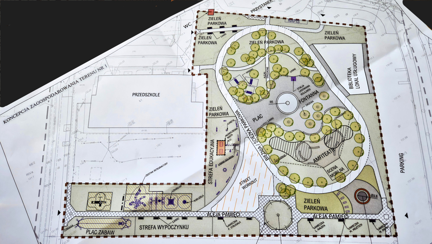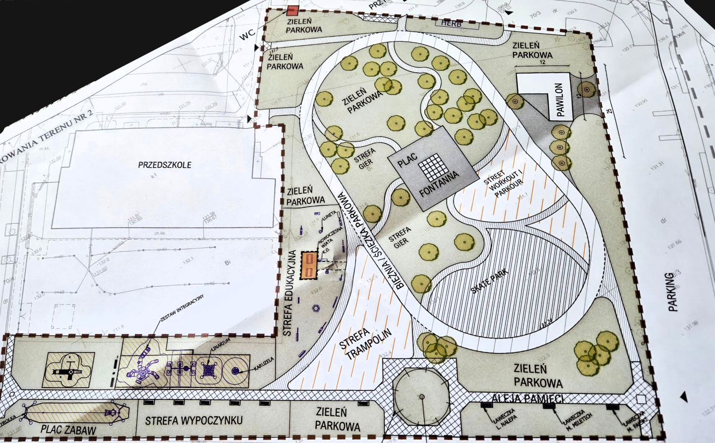 W koncepcji nr 1 przewidziano m.in. budowę kolejnego placu zabaw, strefy workoutu, co ucieszy zapewne młodzież, strefy edukacyjnej z ławka solarną, stanąć też miały karuzela, linarium i zestaw integracyjny.