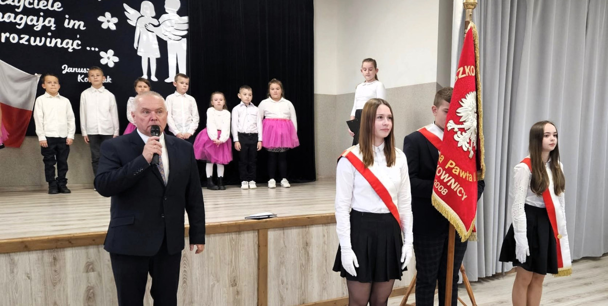 Towarzyszyli im także zaproszeni goście: pani radna Anna Bąk (w imieniu Burmistrza MiG Grabów nad Prosną), pani radna Bernadeta Batóg, pani sołtys Sylwia Janicka oraz przewodnicząca Rady Rodziców pani Sylwia Czemplik.