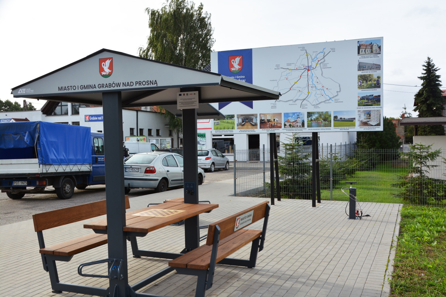 Dzięki wsparciu z PROW 2014-2020 w ramach inicjatywy LEADER w Grabowie nad Prosną powstały nowoczesne wiaty przystankowe. Źródło: UMiG Grabów nad Prosną.