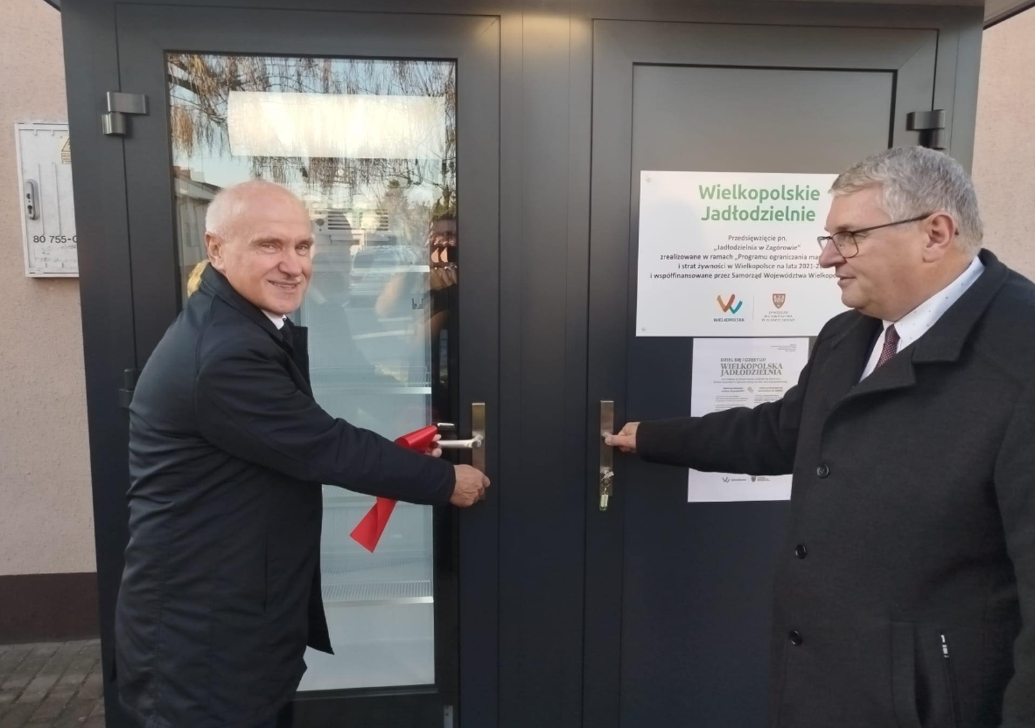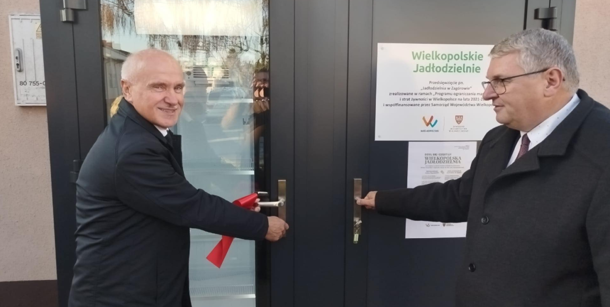 Otwarcie Jadłodzielni w Zagórowie, która została dofinansowana przez Samorząd Województwa Wielkopolskiego. Na zdjęciu od prawej: Krzysztof Grabowski - Wicemarszałek Województwa Wielkopolskiego i Roman Kulterman - Burmistrz Gminy Zagórów