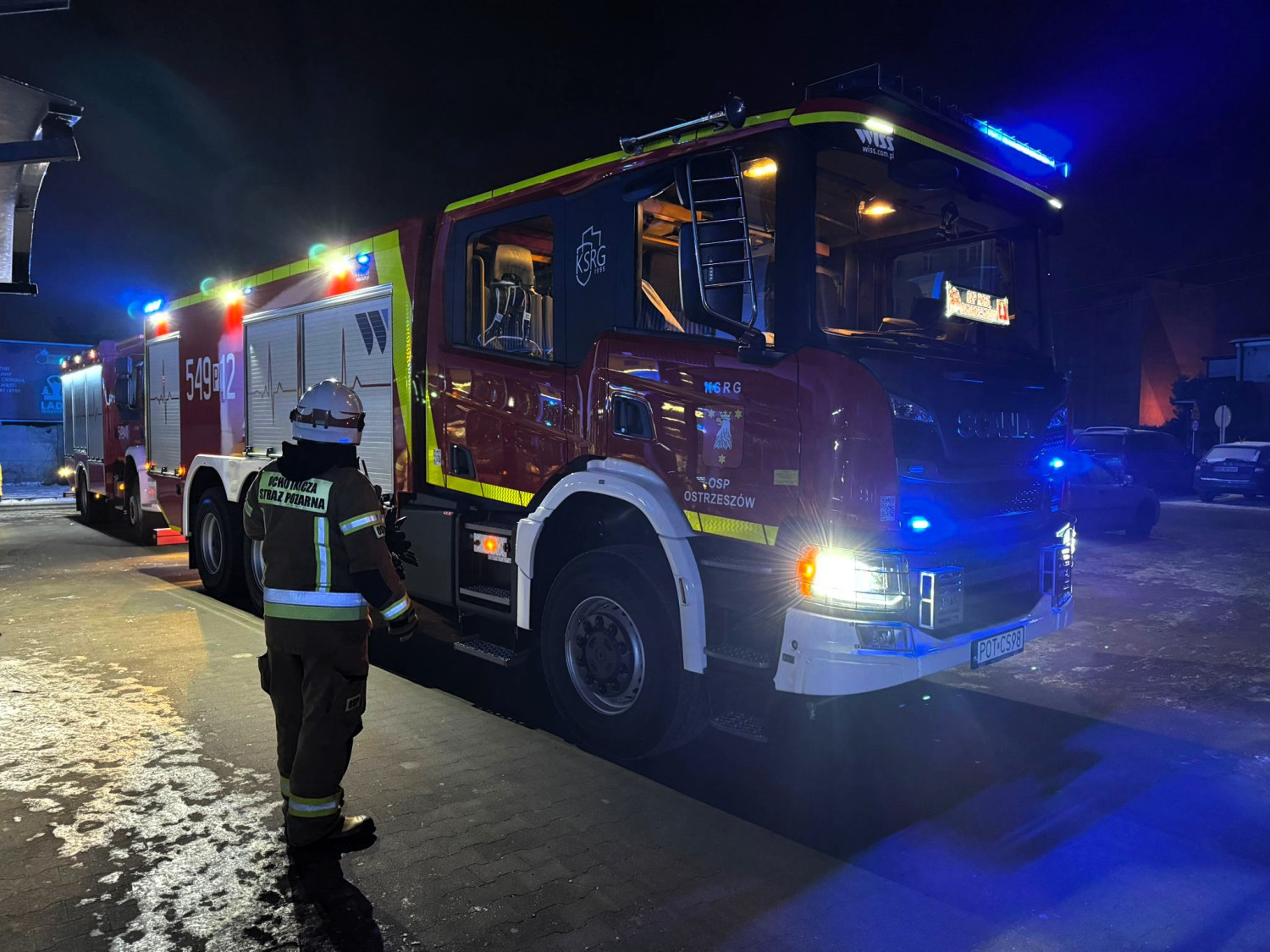 9 stycznia 2026 roku o godzinie 150 w nocy Stanowisko Kierowania Komendy Powiatowej PSP w Ostrzeszowie otrzymało zgłoszenie o pożarze garażu oraz wiaty w Pisarzowicach.