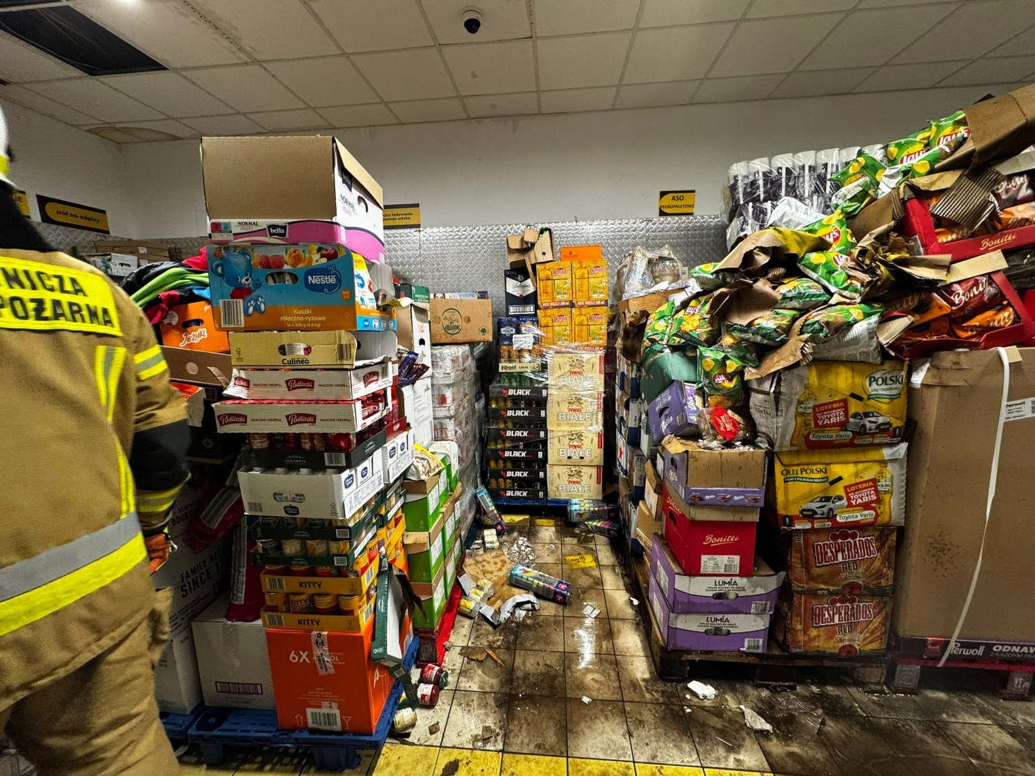 Tej samej nocy o godzinie 3:02 straż otrzymała zgłoszenie o pożarze supermarketu w Ostrzeszowie. - Po dojeździe na miejsce zdarzenia oraz dokładnym rozpoznaniu sytuacji stwierdzono wypełnienie parą wodną całego pomieszczenia magazynowego. Przy użyciu kamery termowizyjnej strażacy odszukali miejsce wycieku pary – mówi sekc. Niemi Biel