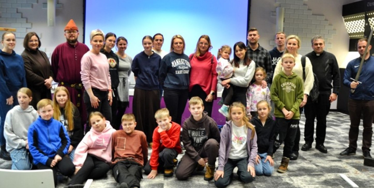 Z Warty pojechaliśmy do Spycimierza niewielkiej miejscowości, która słynie z układania dywanów kwietnych na uroczystość Bożego Ciała. W 2021 roku zostały one wpisane na Listę reprezentatywną niematerialnego dziedzictwa kulturowego ludzkości UNESCO. Część z nas miało okazję już zwiedzić wcześniej to muzeum, ale tym razem mogliśmy uczestniczyć w wyjątkowym zwiedzaniu odbywającym się w ramach spotkania „ Spycimierskie historie”. Naszym przewodnikiem po tych pasjonujących historiach był p. dr Jędrzej Kałużny, dyrektor Centrum. Z zaciekawieniem wysłuchaliśmy opowieści o historii Spycimierza, o kasztelanach spycimierskich oraz o tym, jak zmieniała się zbroja rycerska w średniowieczu. Pan Jędrzej zaprezentował nam uzbrojenia średniowiecznych rycerzy. Chętnych do przymierzenia poszczególnych elementów zbroi nie brakowało. Był też czas na chwilę zabawy i spróbowania swoich sił we władaniu mieczem.