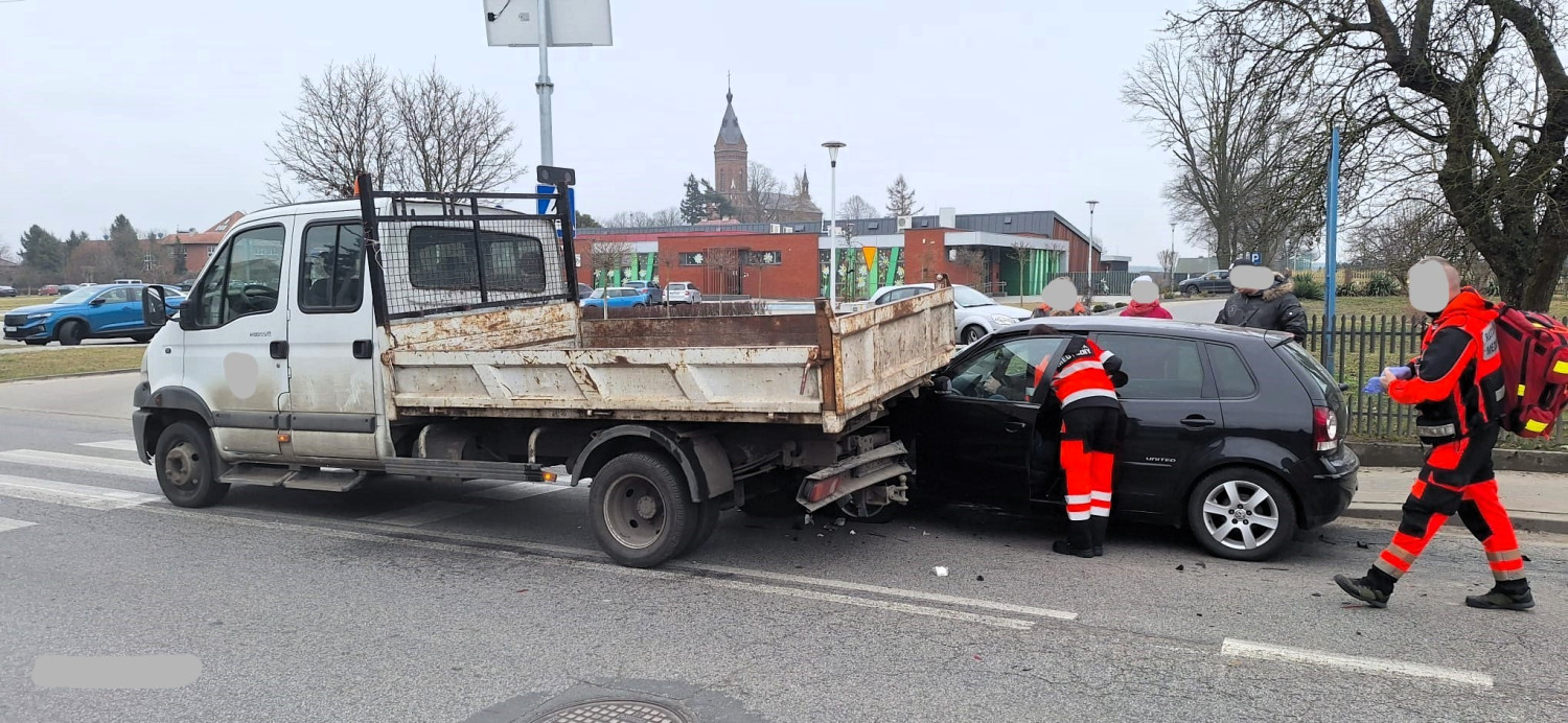W Kraszewicach kierujący Volkswagenem Polo uderzył w jadącego przed nim dostawczego Renault. Trafił do szpitala.