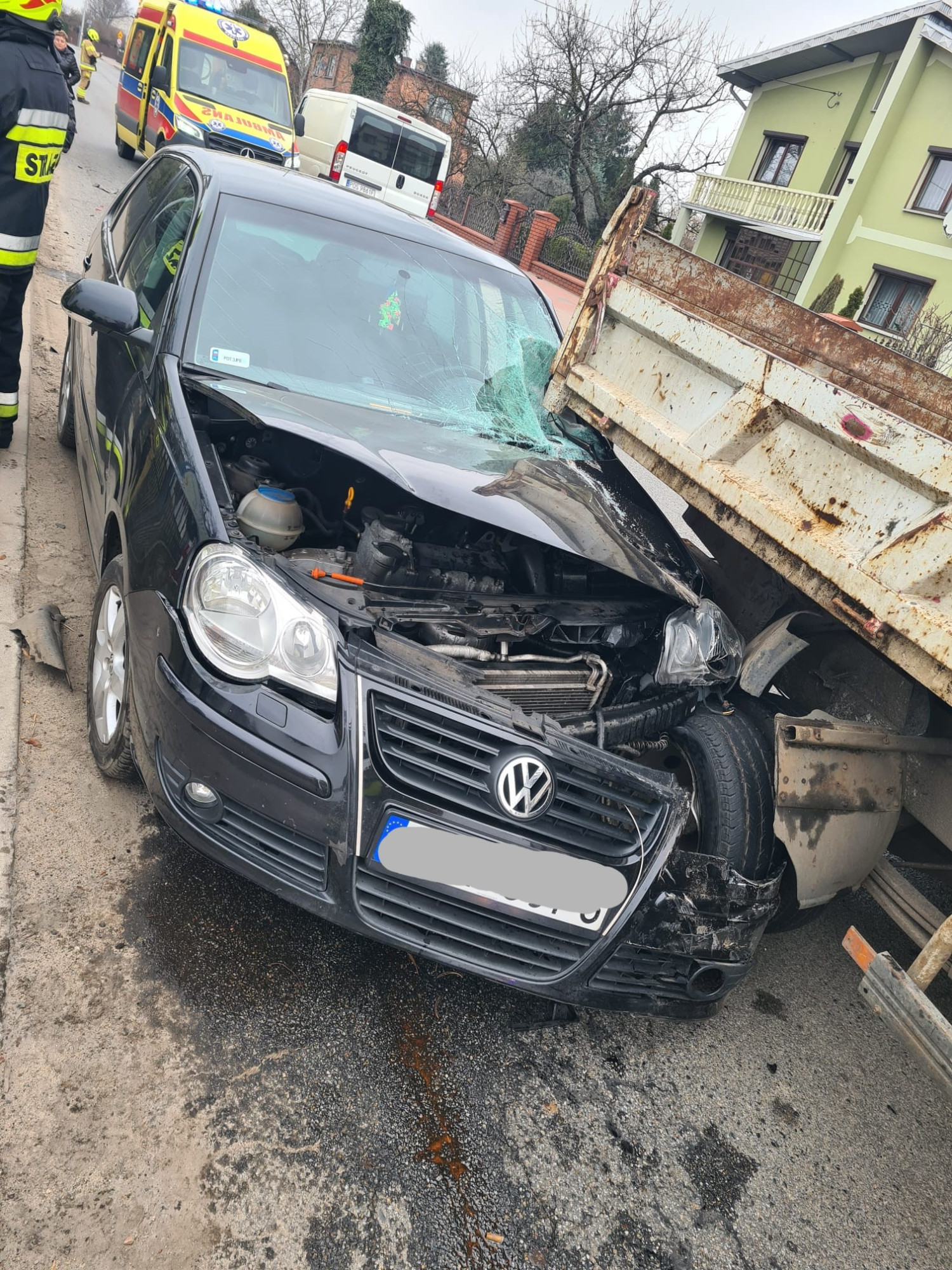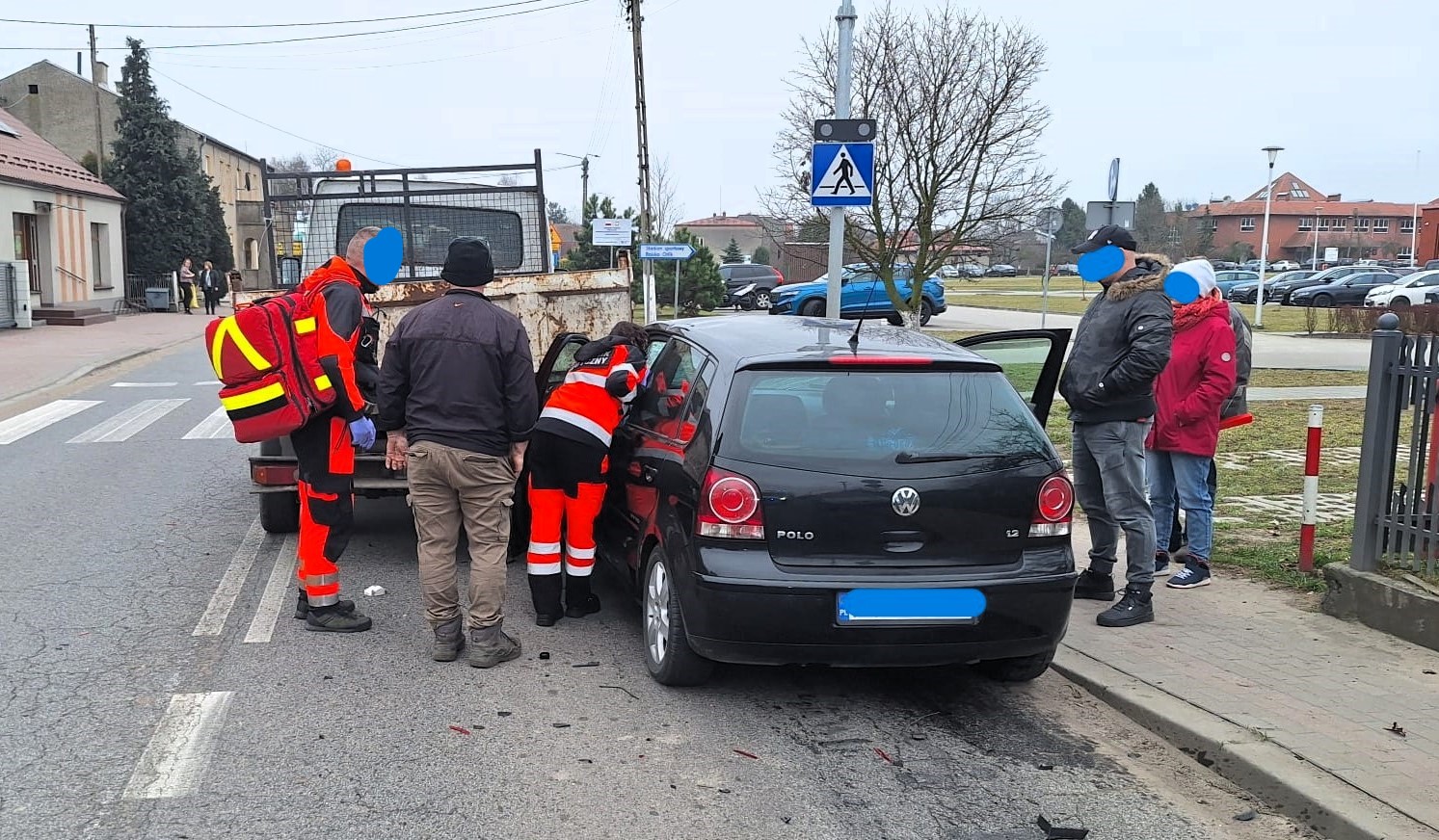 Kierowcę Volkswagena Zespół Ratownictwa Medycznego przewiózł do szpitala. Jadąca z nim kobieta mówiła, że mąż nagle źle się poczuł. Na miejscu jest straż pożarna i policja.