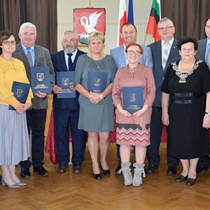 Burmistrz dziękował sołtysom, przewodniczącej rady, radnym, a wszyscy kończącym swoją karierę zawodową i przechodzącym na zasłużoną emeryturę sekretarz Barbarze Wyrwas, inspektor ds. obsługi biura rady Elżbiecie Niełacnej, jak i samemu burmistrzowi.