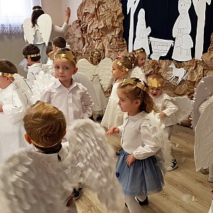 Dzieci pod kierunkiem nauczycielek zaprezentowały na scenie inscenizację ruchową do utworów Edwarda Griega, zaśpiewali kolędy Arki Noego "Świeć gwiazdeczko mała świeć" oraz Armii dzieci "Cieszmy się, bawmy się". Na zakończenie swojego występu przedszkolaki wręczyły rodzicom bombki i zaprosili ich do wspólnego tańca. Nie brakowało wzruszeń, gestów serdeczności i przytuleń.