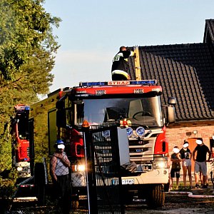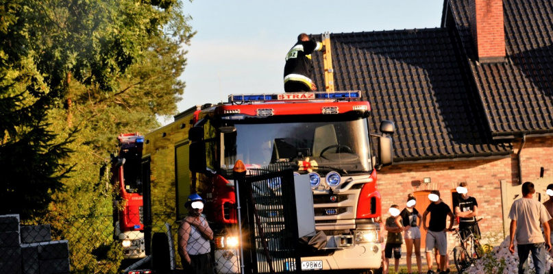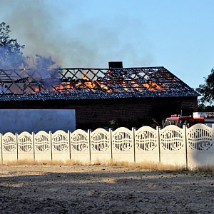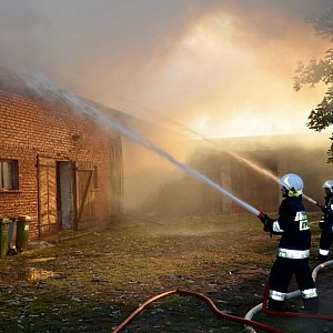 Ogień wybuchł około 18.40. Do walki z żywiołem skierowano 8 jednostek straży pożarnej (w tym 5 OSP), w sumie z ogniem walczyło 32 strażaków. Kiedy na miejsce dotarły pierwsze wozy ratowniczo-gaśnicze, pożarem objęty był już całkowicie dach budynku gospodarczo-magazynowego o wymiarach 28 x 11 x 8 m.
