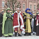Proboszczowie miejscowych parafii - księża Piotr Kowalek, Leszek Szkopek i Paweł Maliński - wcielili się w role Mędrców podczas niedzielnego Orszaku Trzech Króli w Ostrzeszowie. Razem z nimi oraz rzeszą mieszkańców do Betlejemskiego Żłóbka pospieszył też biskup senior diecezji kaliskiej, ks. Stanisław Napierała.