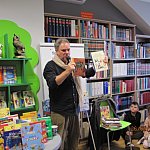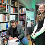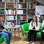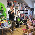 Projekt „Trzy spotkania na dwa głosy” – to trzy spotkania autorskie, które zorganizowano w bibliotece z pisarzami dla dzieci, młodzieży i dorosłych. Ponadto zaangażowana w zadanie młodzież z klasy 8 przeprowadzała wywiady z autorami, na podstawie których stworzyli transmisję, którą opublikowali na stronie internetowej i w social mediach biblioteki.