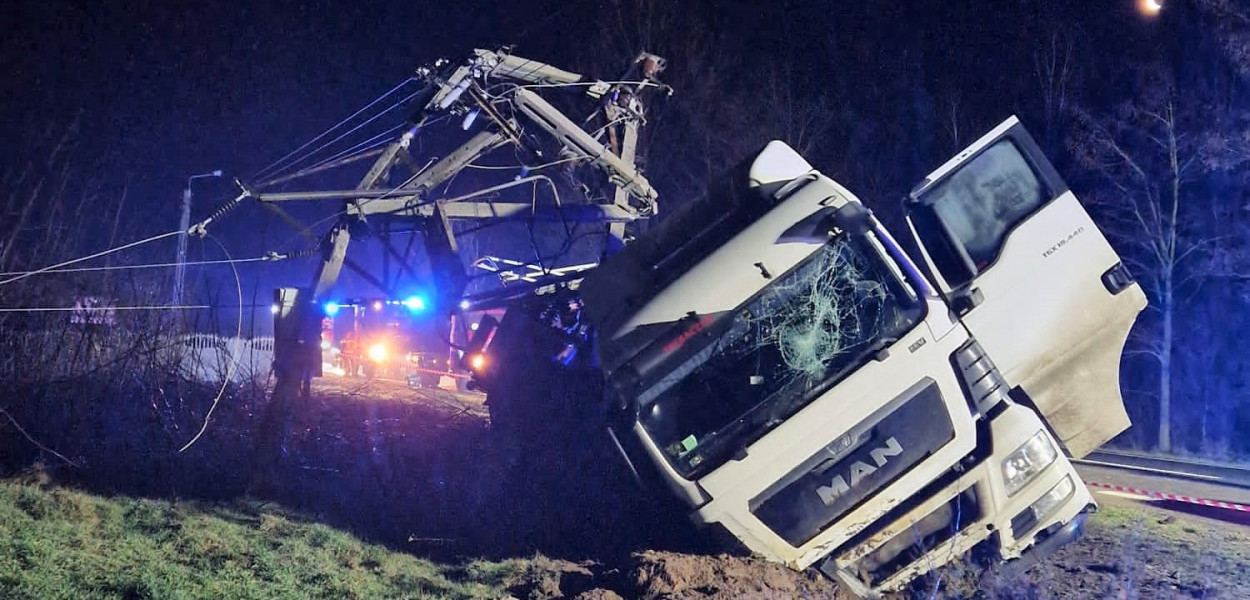 17 stycznia w Jankowie Drugim w gminie Blizanów samochód ciężarowy uderzył w słup energetyczny.