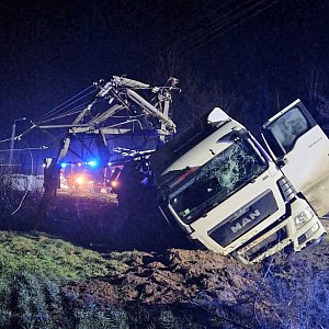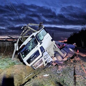 Na miejsce zdarzenia zadysponowano zastępy z JRG 1 w Kaliszu, OSP Blizanów oraz OSP Janków Pierwszy. - Po przybyciu na miejsce zdarzenia strażacy stwierdzili, że samochód ciężarowy marki Man przewożący w silosie kredę uderzył w słup energetyczny, a auto leży przewrócone na boku w rowie – mówi st. asp. Daniel Przegenda z KM PSP w Kaliszu. Kierujący autem wyszedł z pojazdu przed przybyciem straży, nie wymagał on udzielenia pomocy.
