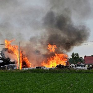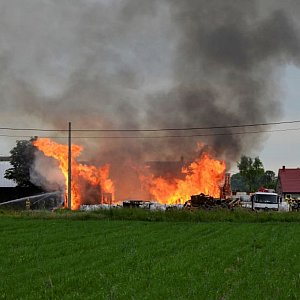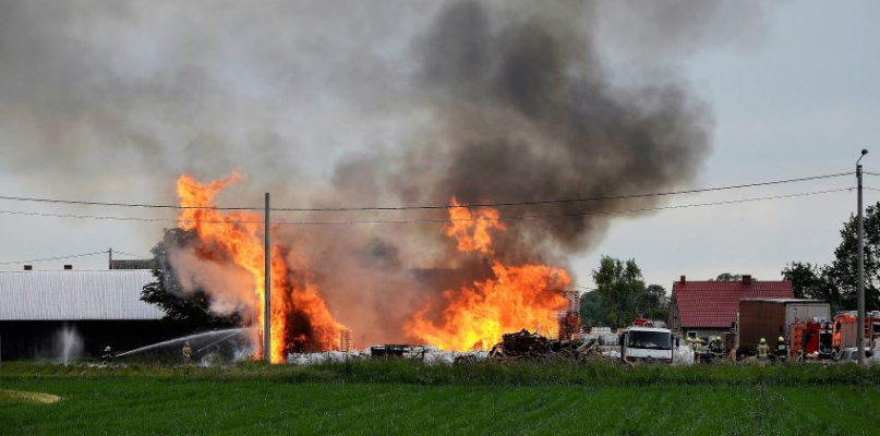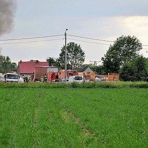 Ogień wybuchł około godz. 17.10. Na miejsce docierają kolejne jednostki państwowej i ochotniczej straży pożarnej. Policja, aby nie dopuścić do zablokowania drogi prowadzącej do miejsca zdarzenia przez samochody ,,gapiów'' zorganizowała objazdy.