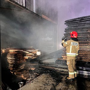Po dojeździe na miejsce zdarzenia pierwszych jednostek ochrony przeciwpożarowej zastano budynek stolarni częściowo objęty pożarem, a w jego pobliżu znajdowały się materiały palne oraz gotowe wyroby drewniane.