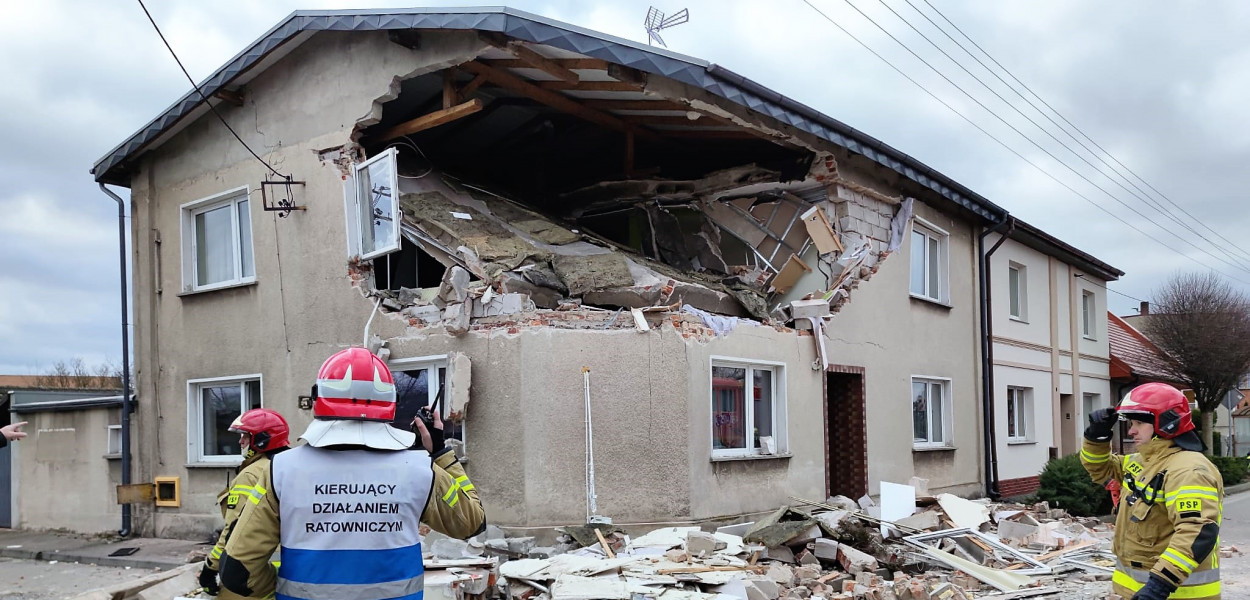 - Pierwsze przybyłe na miejsce zdarzenia zastępy po przeprowadzeniu wstępnego rozpoznania stwierdziły, iż doszło do częściowego zawalenia 2-giej kondygnacji budynku mieszkalnego, w którym przebywają 2 osoby. Przyczyną zawalenia prawdopodobnie był wybuch gazów palnych - mówi kpt. Paweł Michalski