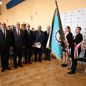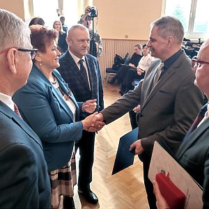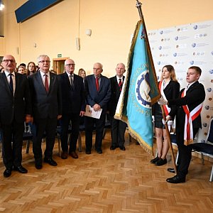 Uroczyste wręczenie medalu nastąpiło 1 marca podczas uroczystego apelu z okazji Narodowego Dnia Żołnierzy Wyklętych w Zespole Szkół nr 1. Medal wraz z aktem nadania dyrektorowi ZS nr 1 Dariuszowi Grzesikowi wręczył wiceprezes WZW ZKRPiBWP Mariusz Mikołajewski w obecności ostrzeszowskich kombatantów Bohdana Ogrodowskiego i Stanisława Grzesiaka. W uroczystości uczestniczył także emerytowany wicedyrektor Zespołu Szkół nr 1 Wacław Mucha-Kruczyński, który został wyróżniony medalem „Pro Patria” w uznaniu szczególnych zasług w kultywowaniu pamięci o walce o niepodległość Rzeczypospolitej Polskiej. Pełne szacunku i uznania gratulacje na ręce wyróżnionych złożył starosta Lech Janicki wraz z wicestarostą Zofią Witkowską oraz członkiem Zarządu Powiatu Adamem Mickiewiczem.
