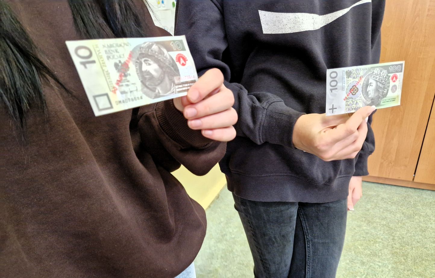 Za październikową lekcję odpowiadała pani Katarzyna Cegiełka, nauczycielka matematyki oraz uczennice klasy 8b – Lena Pilarczyk i Nadia Bednarz. Na początku padło pytanie: Czym właściwie jest zero? Uczniowie zgodnie odpowiedzieli, że „zero to nic”. Wtedy wyjaśniliśmy, że choć samo zero wydaje się niczym, to w rzeczywistości ma ogromne znaczenie. Doskonałym i bardzo zrozumiałym przykładem było porównanie banknotów o nominałach 10 zł i 100 zł. Pierwszoklasiści, choć na co dzień nie operują jeszcze tak dużymi liczbami, szybko zauważyli, że jedno „0” potrafi zrobić ogromną różnicę!