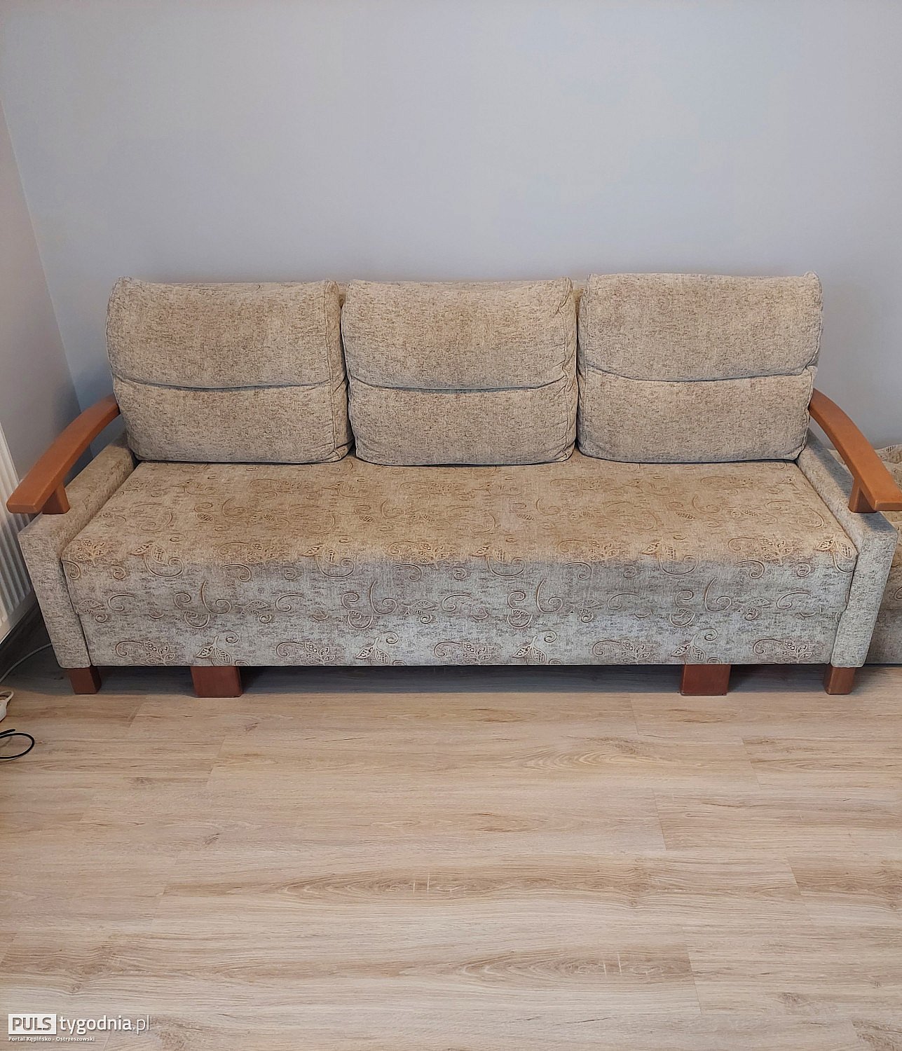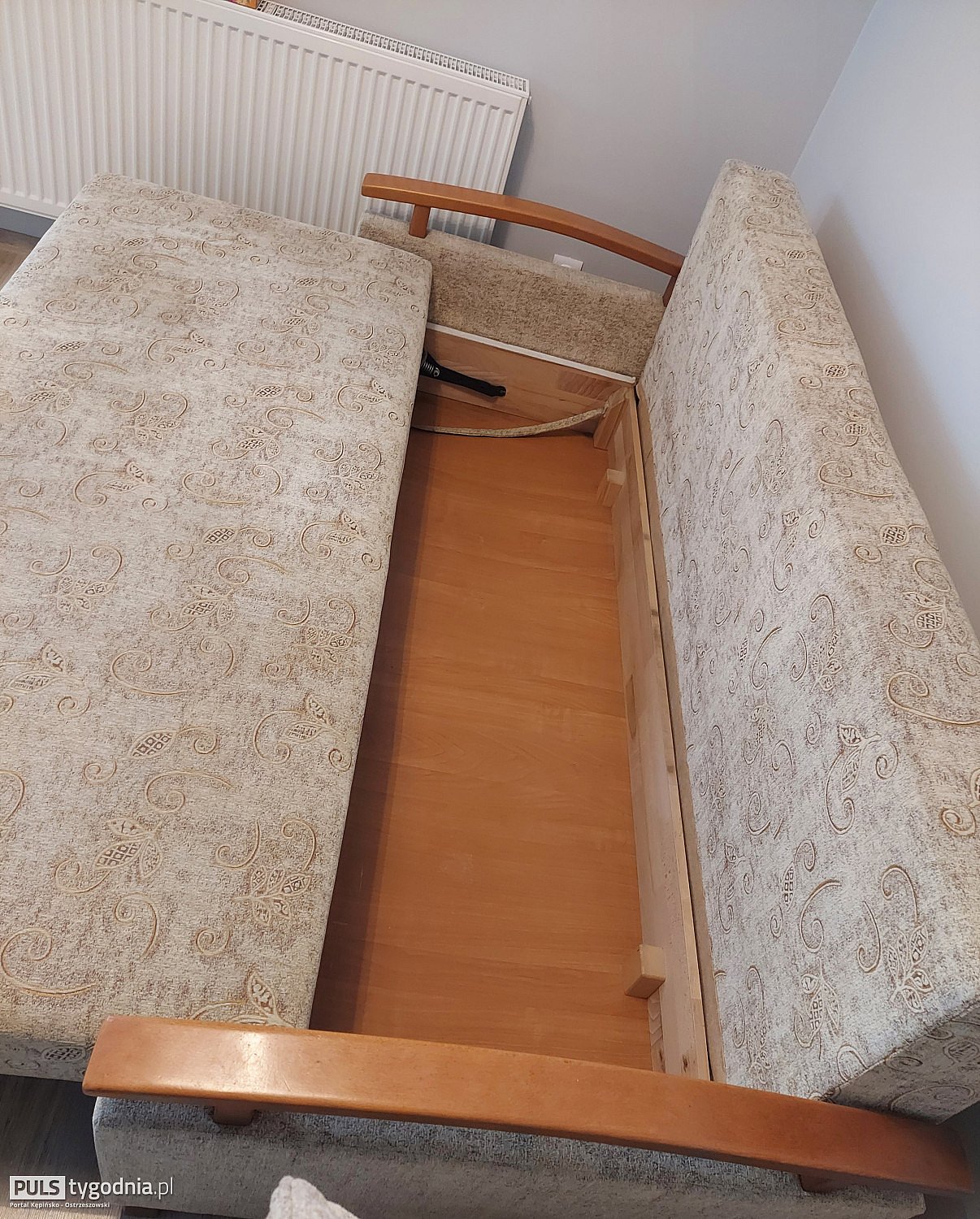 Sprzedam kanapę z funkcją spania. Kanapa to Max 10 Unimebel, drewniany stelaż, sprężyny i pianka w bardzo dobrym stanie.Pojemnik na pościel w kanapie. Wymiary kanapy szerokość 207cm głębokość 100cm wysokość 94cm i powierzchnia spania to 155cmx190cm. Odbiór osobisty.