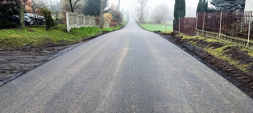 Trwają prace na drodze powiatowej Biskupice Zabaryczne – Przygodziczki w gminie Mikstat, na którą samorząd powiatu ostrzeszowskiego dostał dofinansowanie (95 % wartości inwestycji) z Rządowego Funduszu Polski Ład: Program Inwestycji Strategicznych na lata 2022-2023. fot. UMiG Mikstat