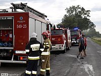Dzisiaj (9 lipca) około godz. 12 Stanowisko Kierowania Komendanta Powiatowego PSP w Ostrzeszowie zostało powiadomione o pożarze zboża na pniu w Mącznikach. Ogień trawił też zrąb lasu w Kuźnicy Myślniewskiej. fot. PSP/OSP Grabów
